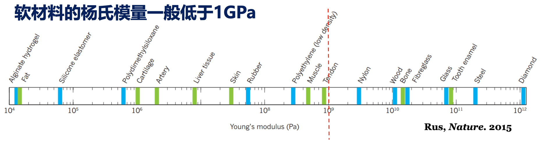 杨氏模量 \(E < 1 \, \text{GPa}\)